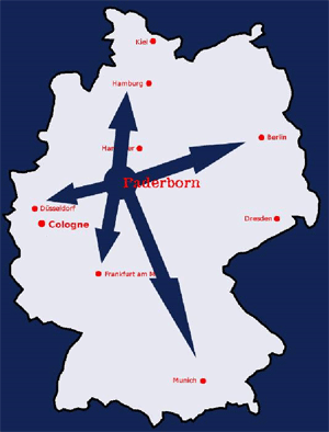 We are based in Paderborn, in the middle of Germany, ideally situated to reach all the important media centres like Munich, Hamburg, Berlin, Frankfurt, Düsseldorf and Cologne.